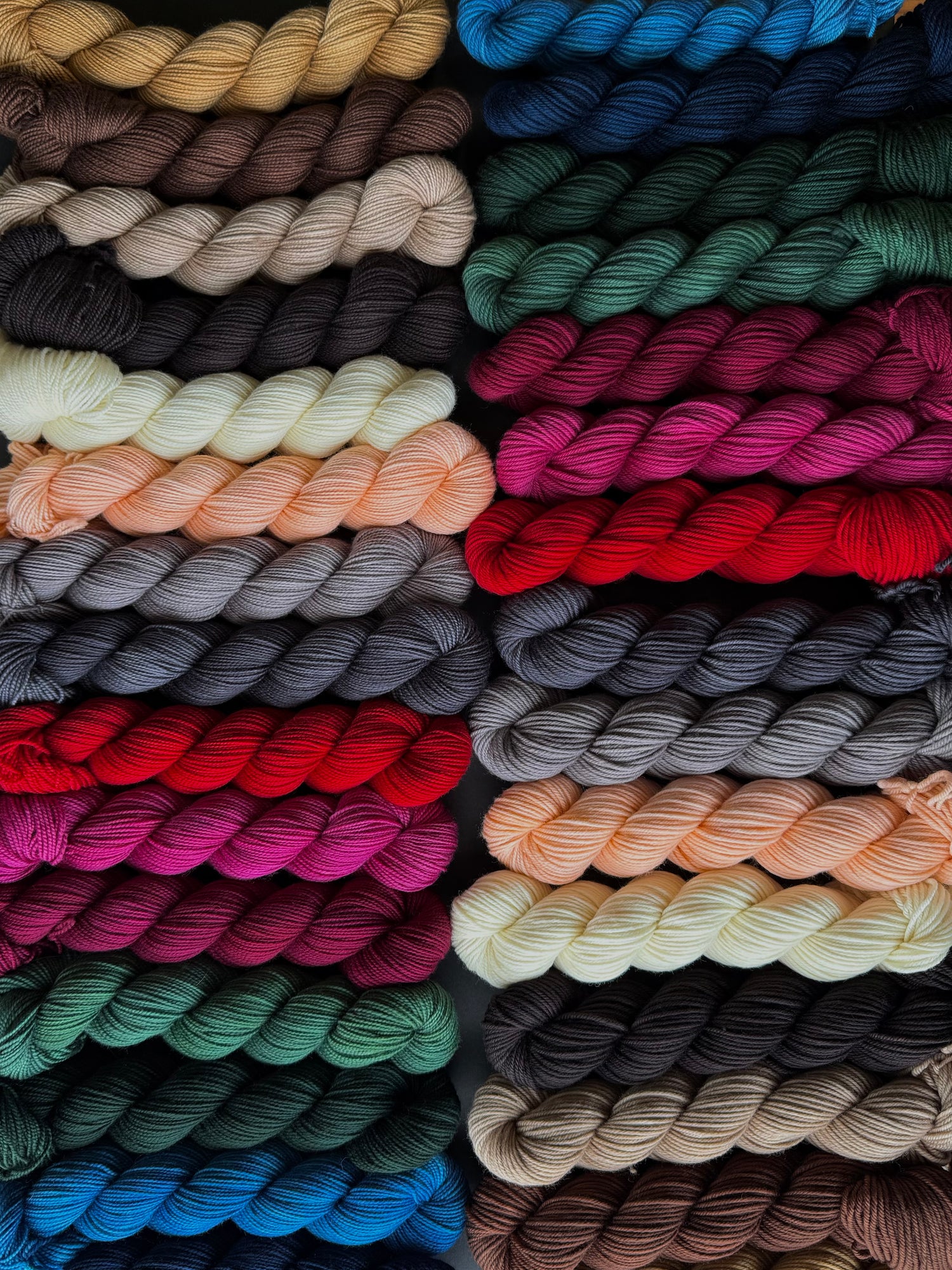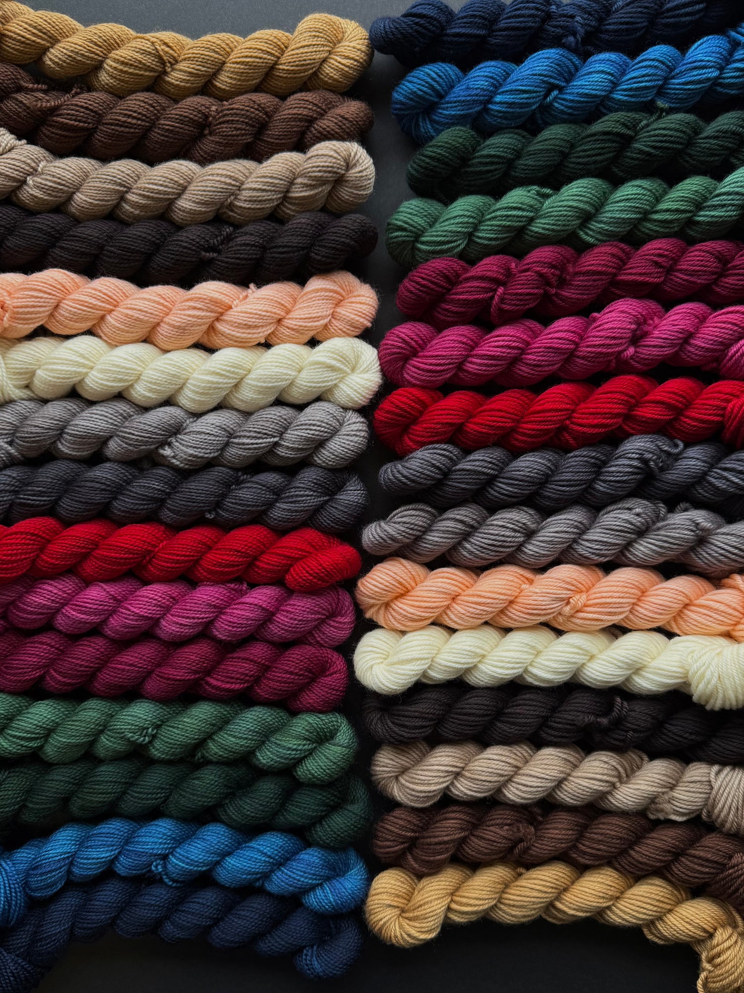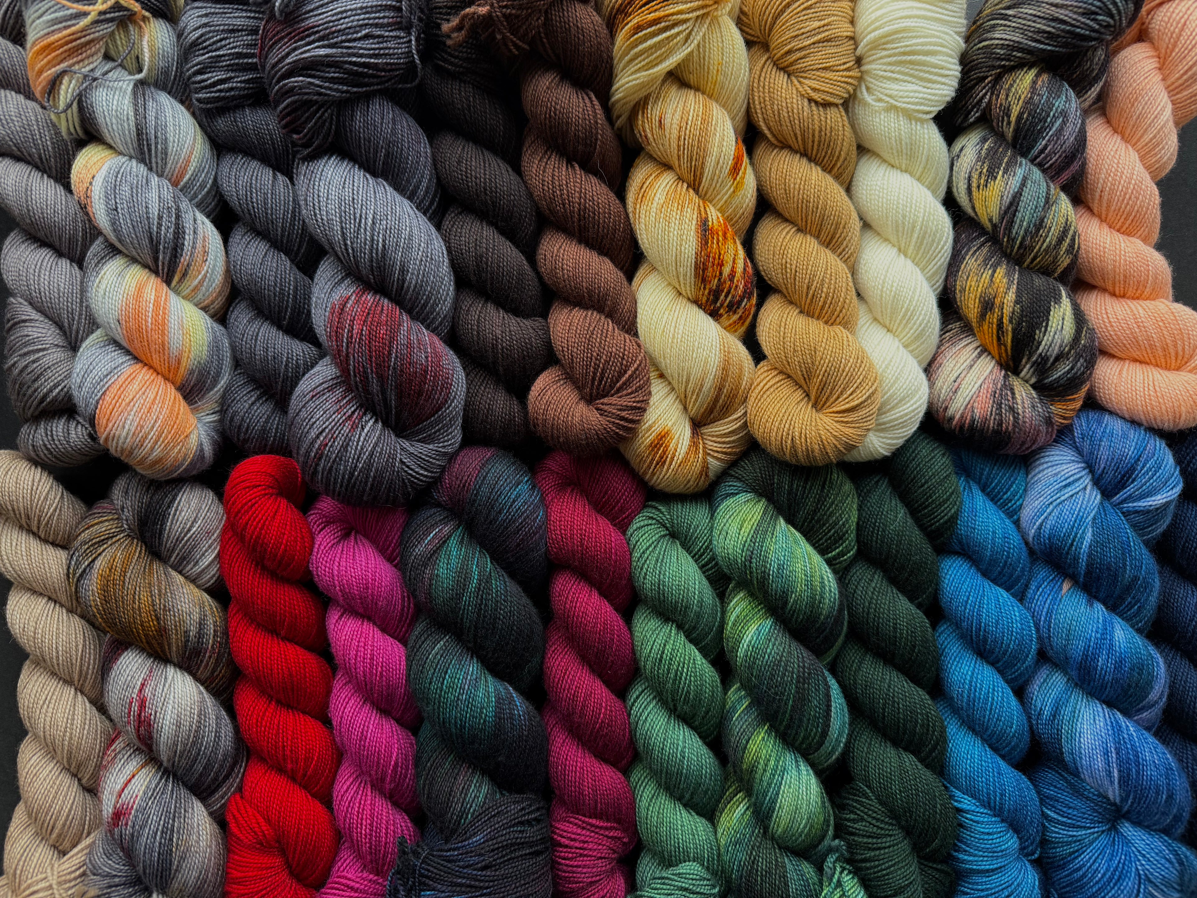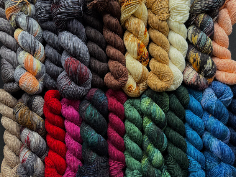 Love the collection? Need all the tonals? We have full tonal sets on 20 and 50 gram mini skeins on our Double Double Sock and Classic DK bases!