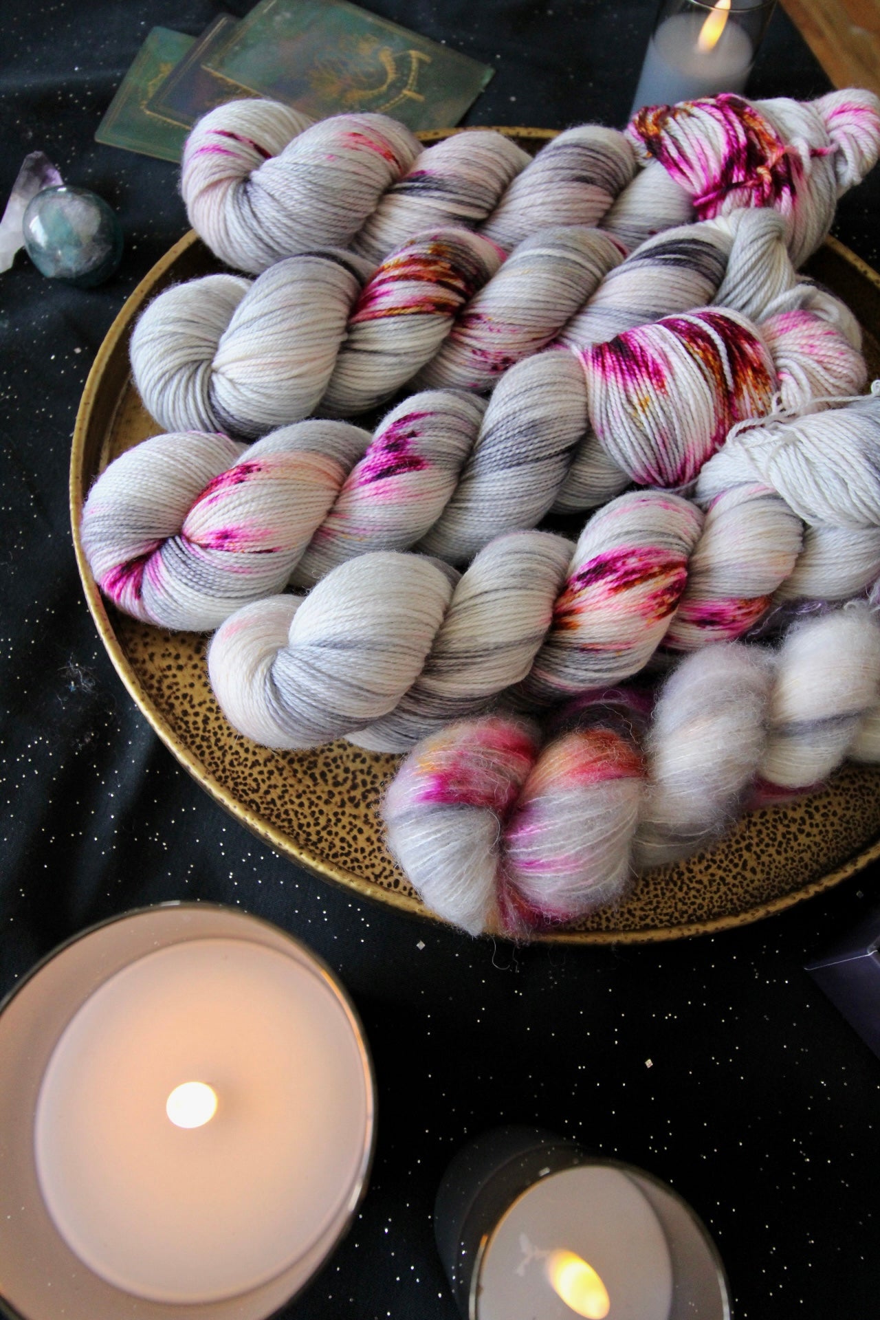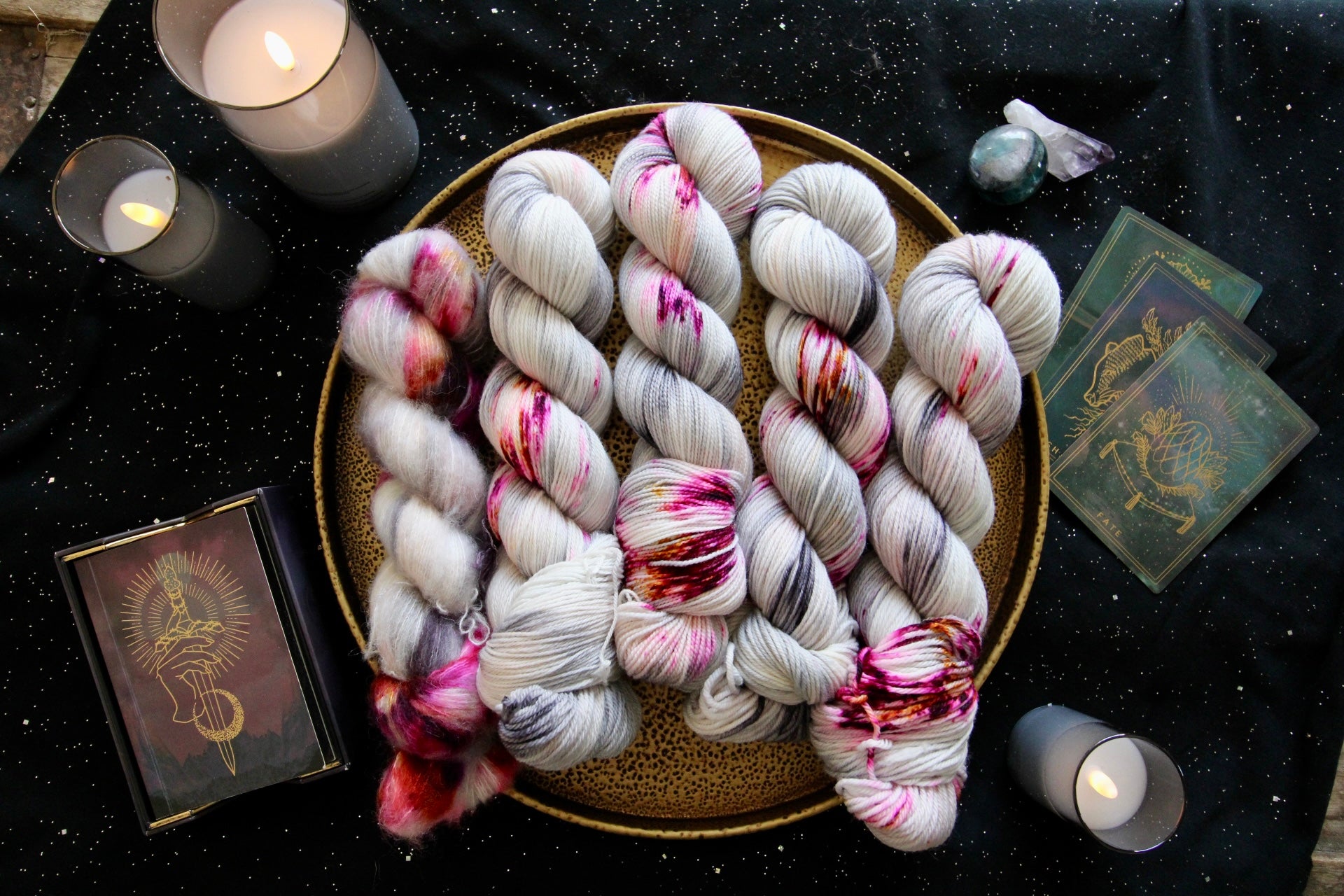 Fate is such a fun speckled colorway - with a silver/white base and speckles of gold and deep pink.