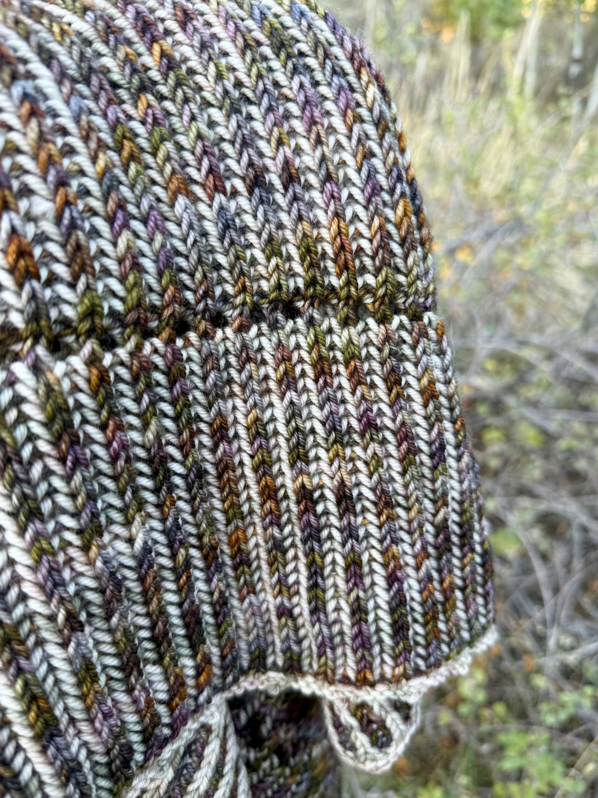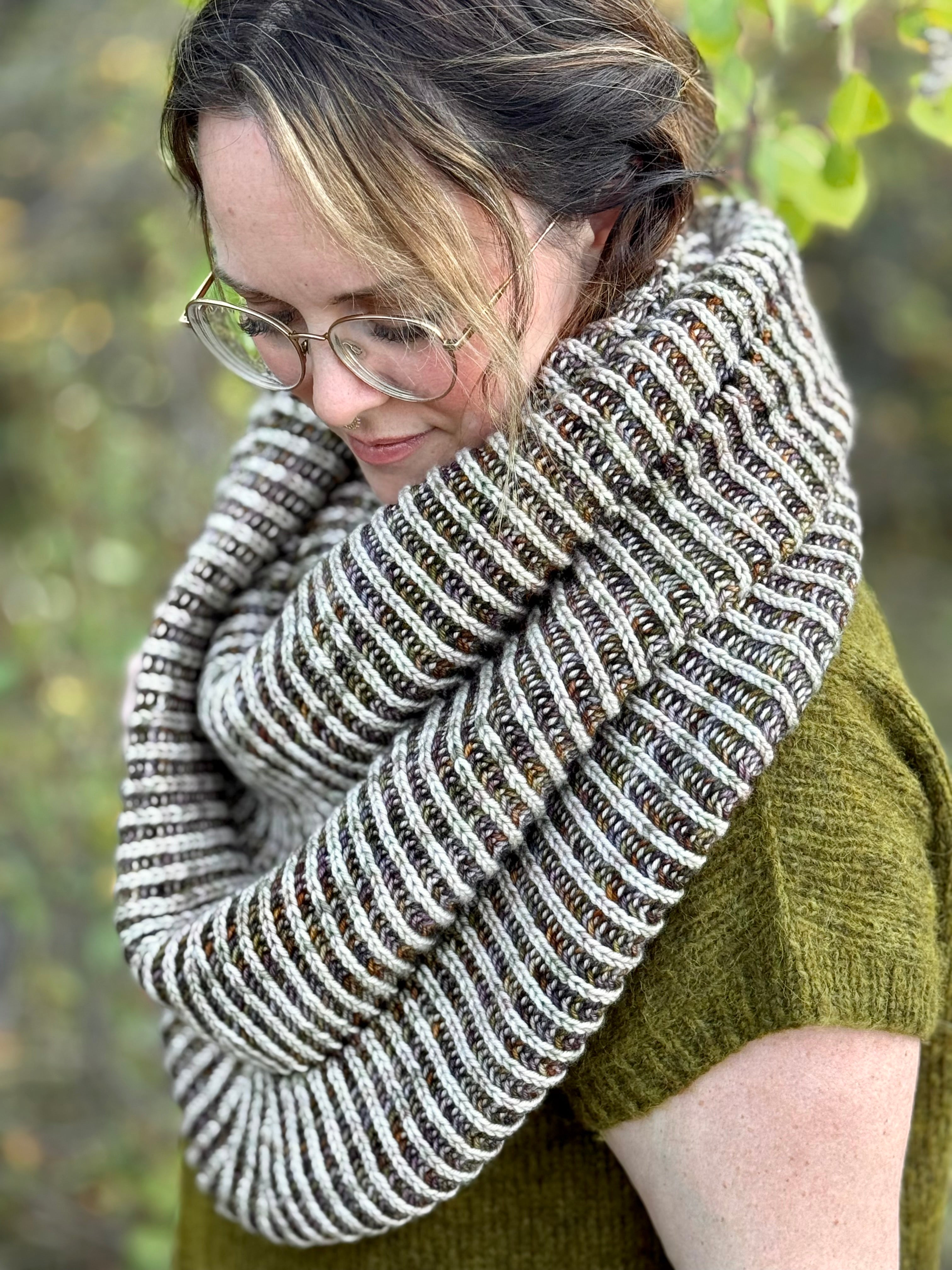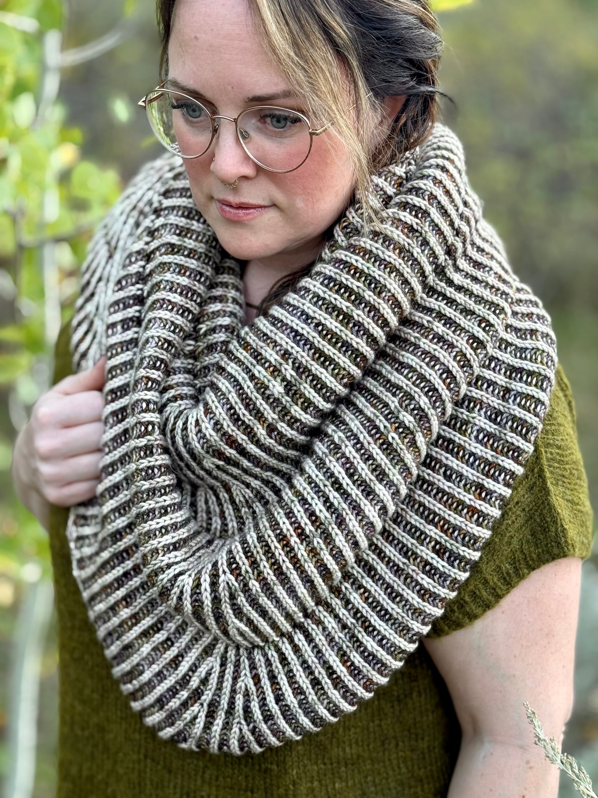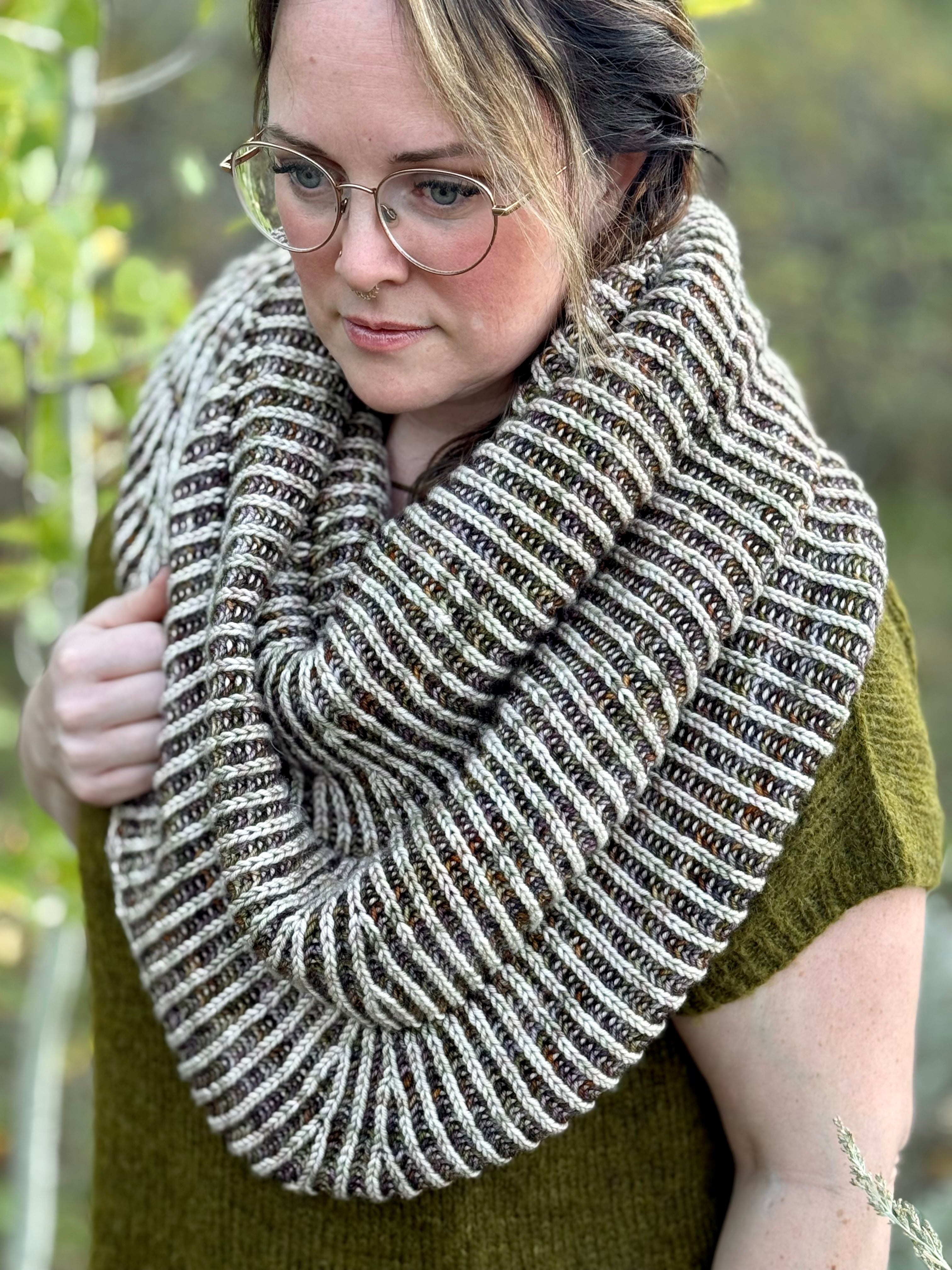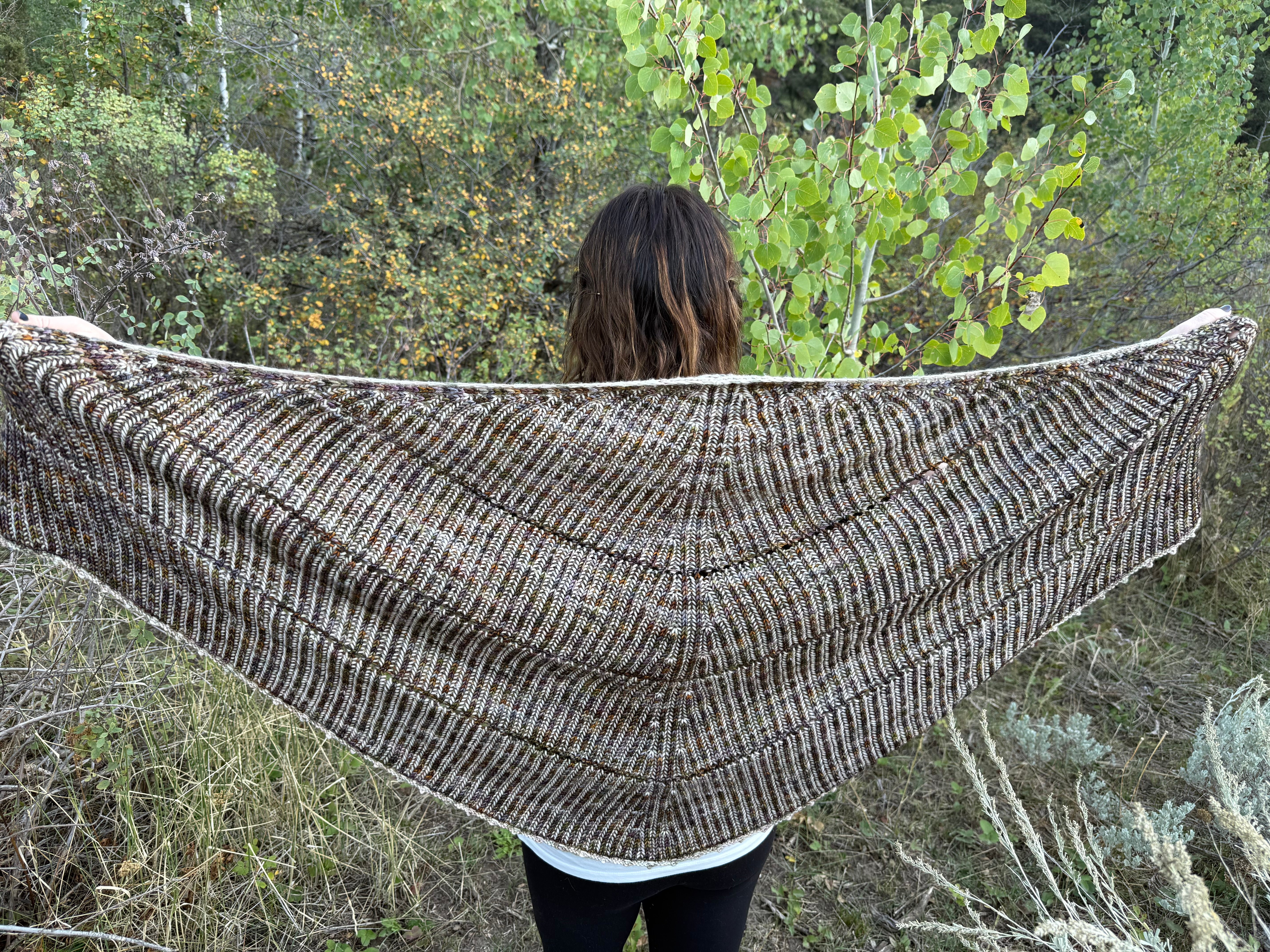 This kit contains 2 skeins each of Wrackline and Eventide on our Classic DK base to created the lovely 2-color brioche shawl, Diatom by Camille Descoteaux