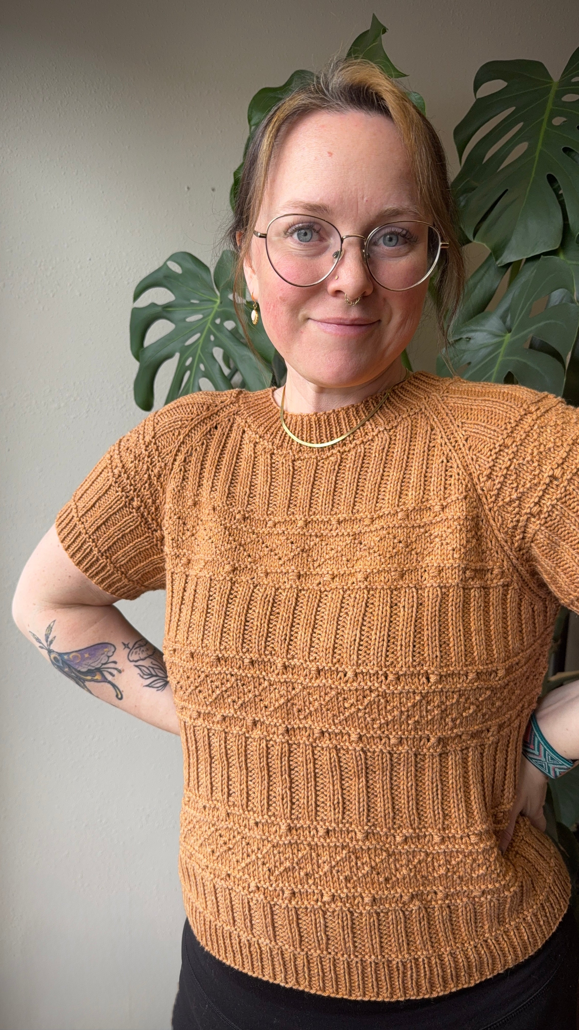 Our version uses our Ostara DK base in the colorway Manifest. I'll have kits listed by size for this version.