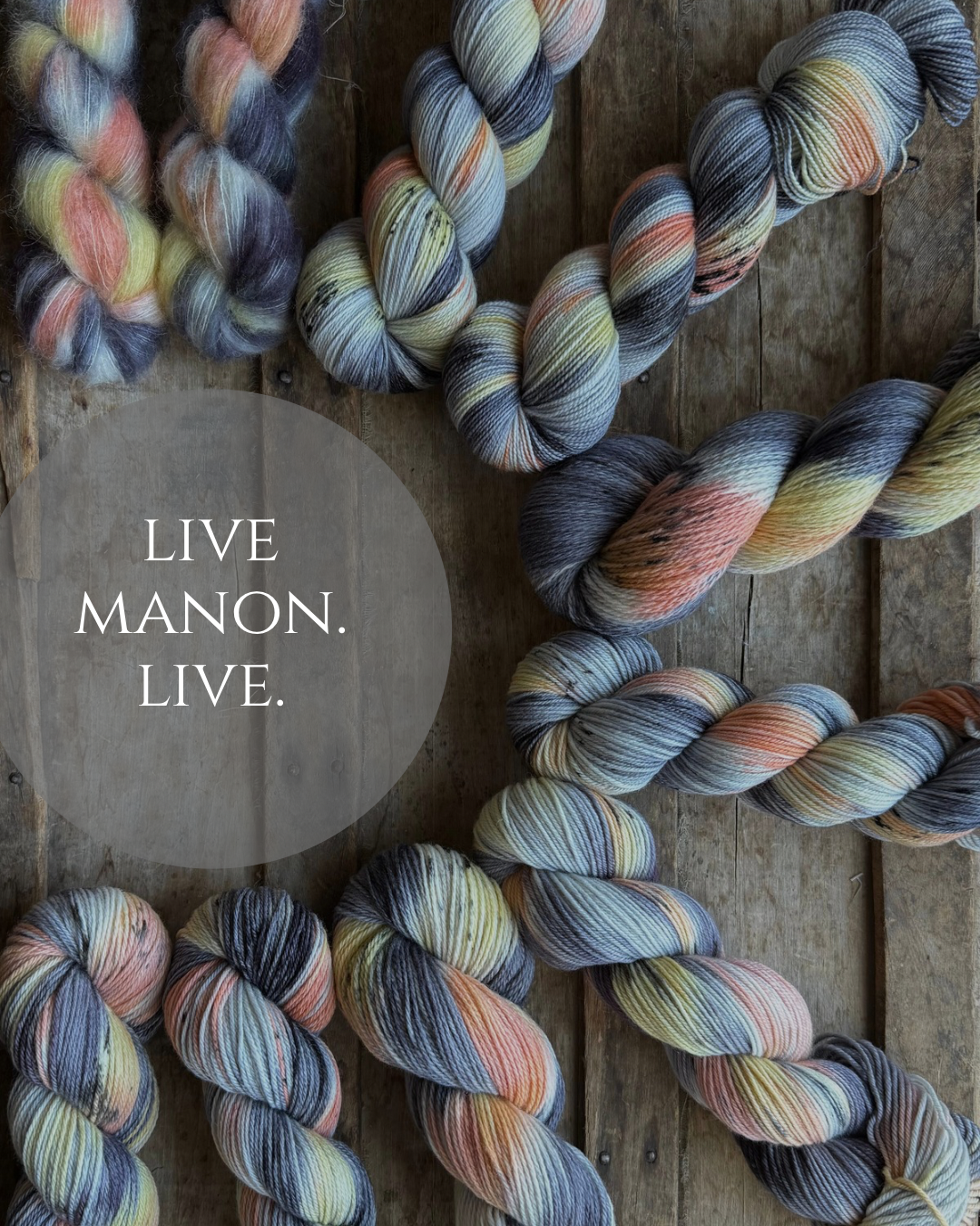 Live Manon is primarily a neutral with a base of white, grey, and black. We add a splash of buttercream yellow and peach to give it a little bit of a punch.