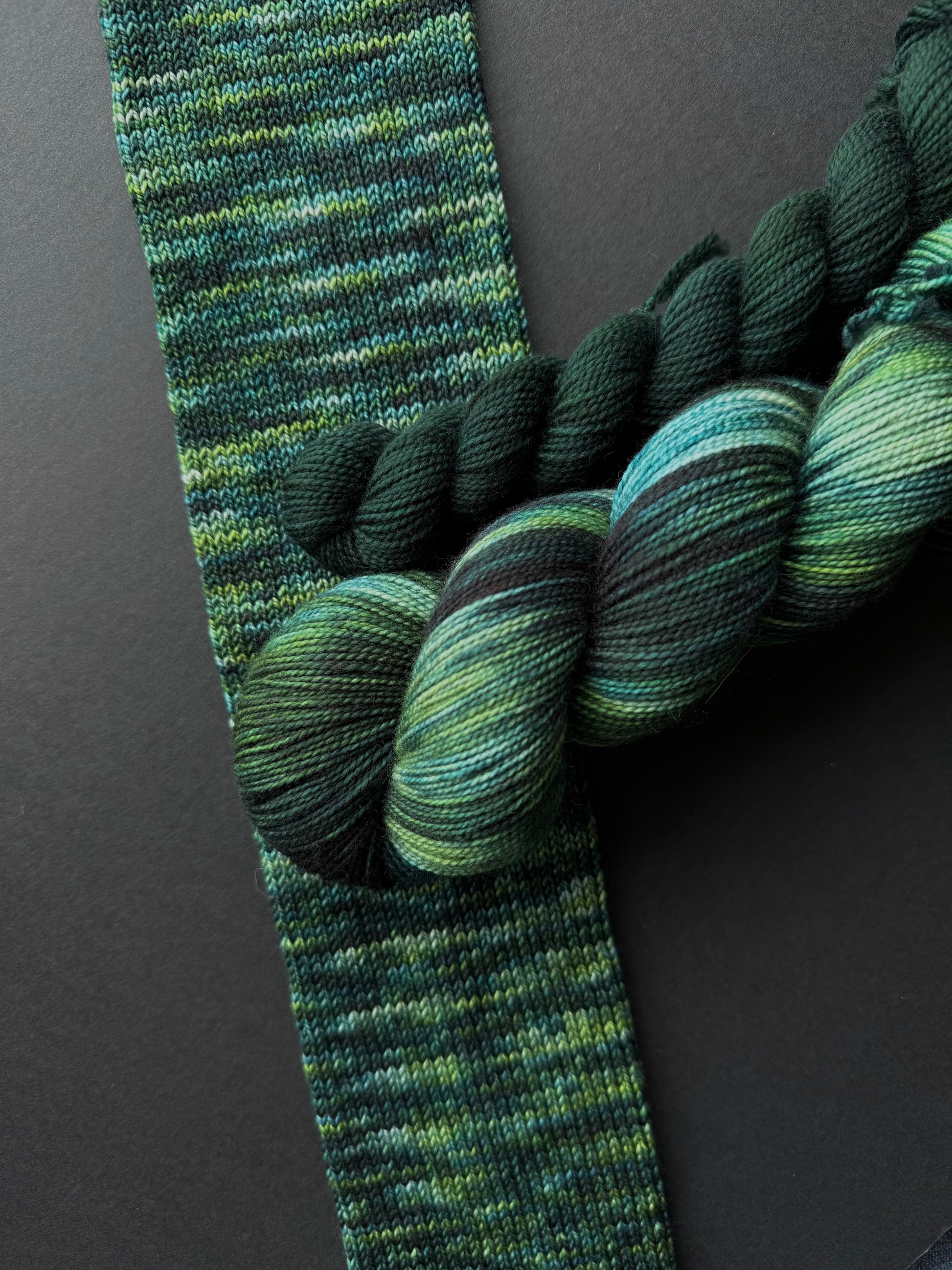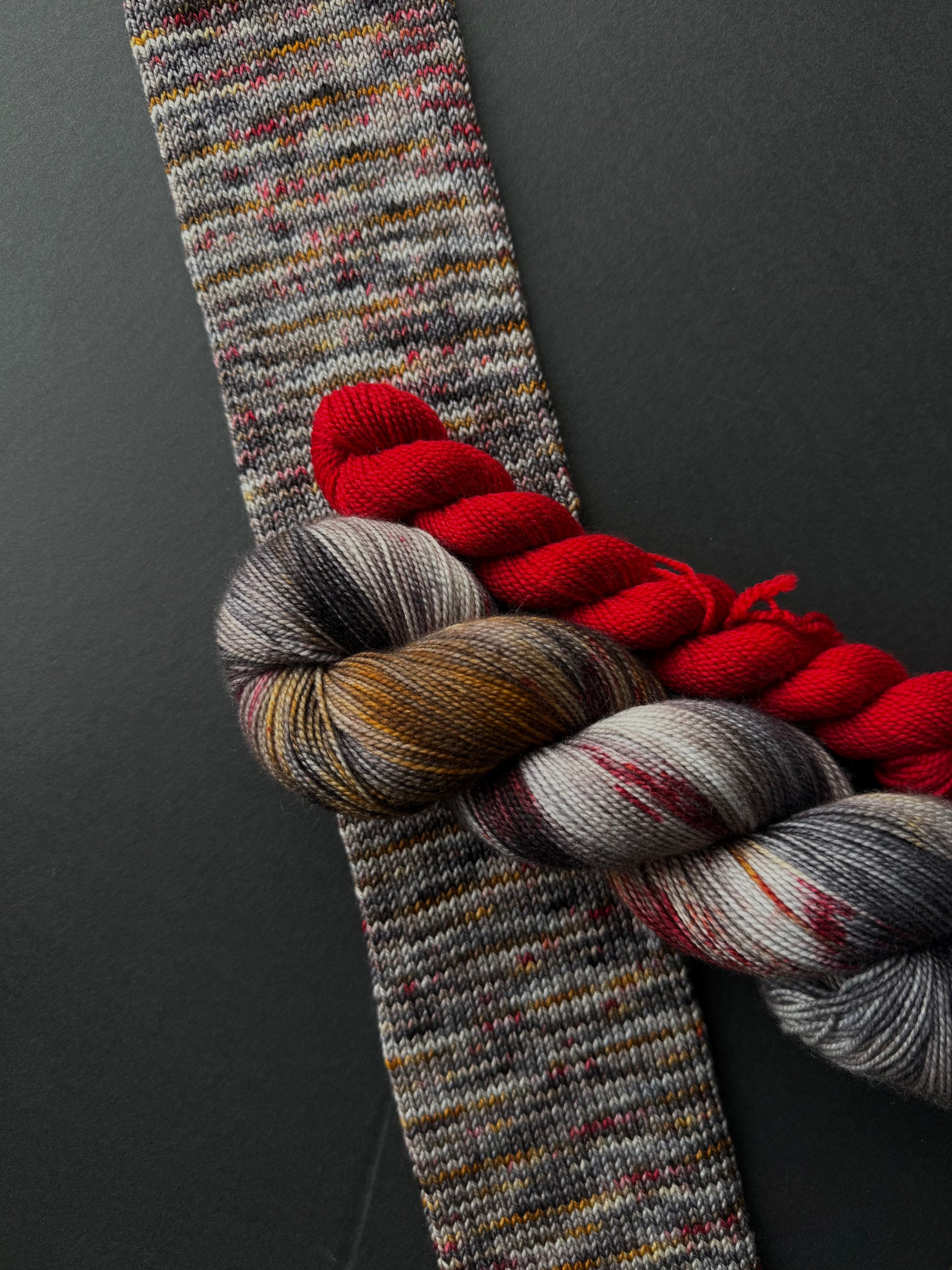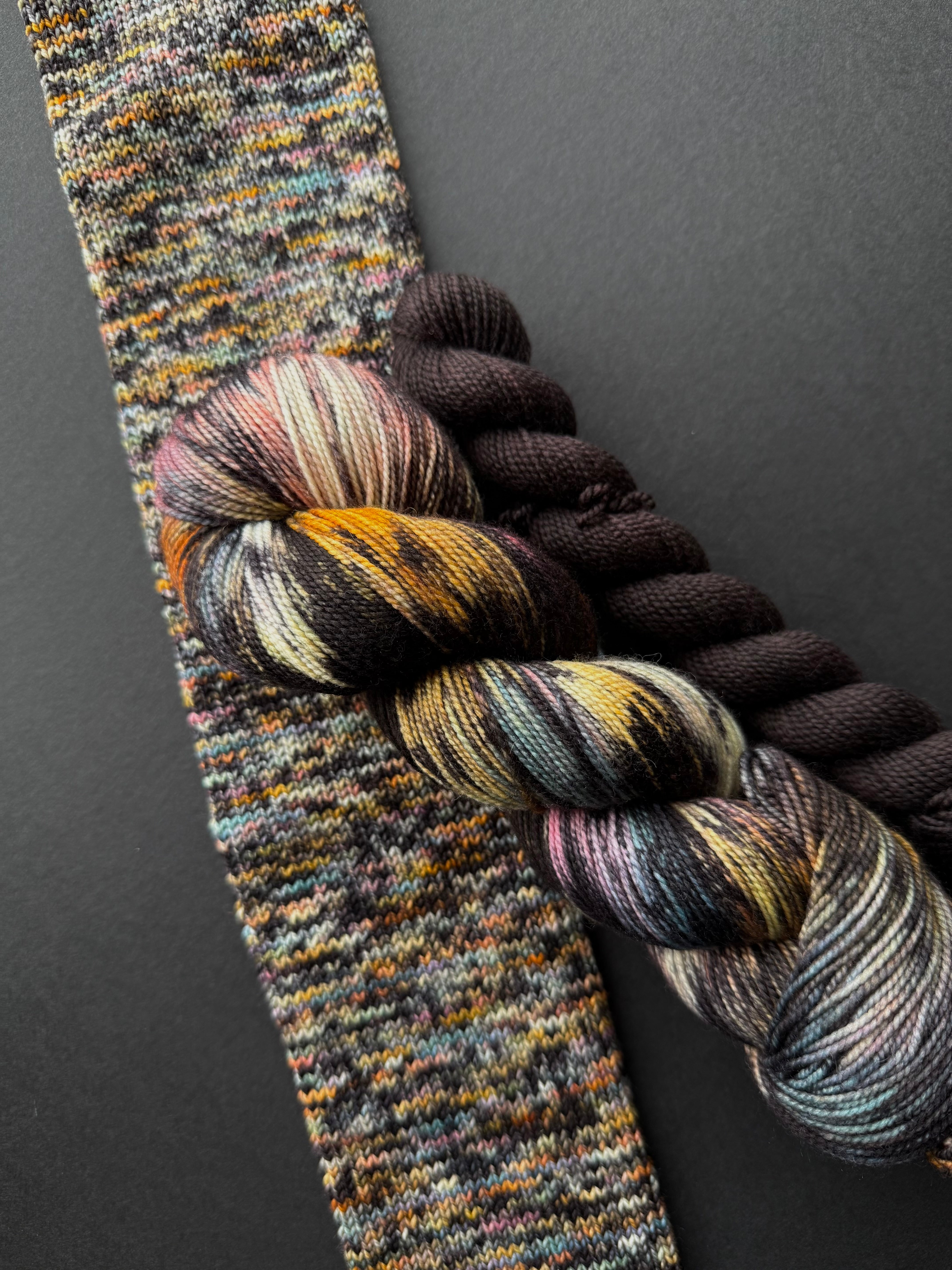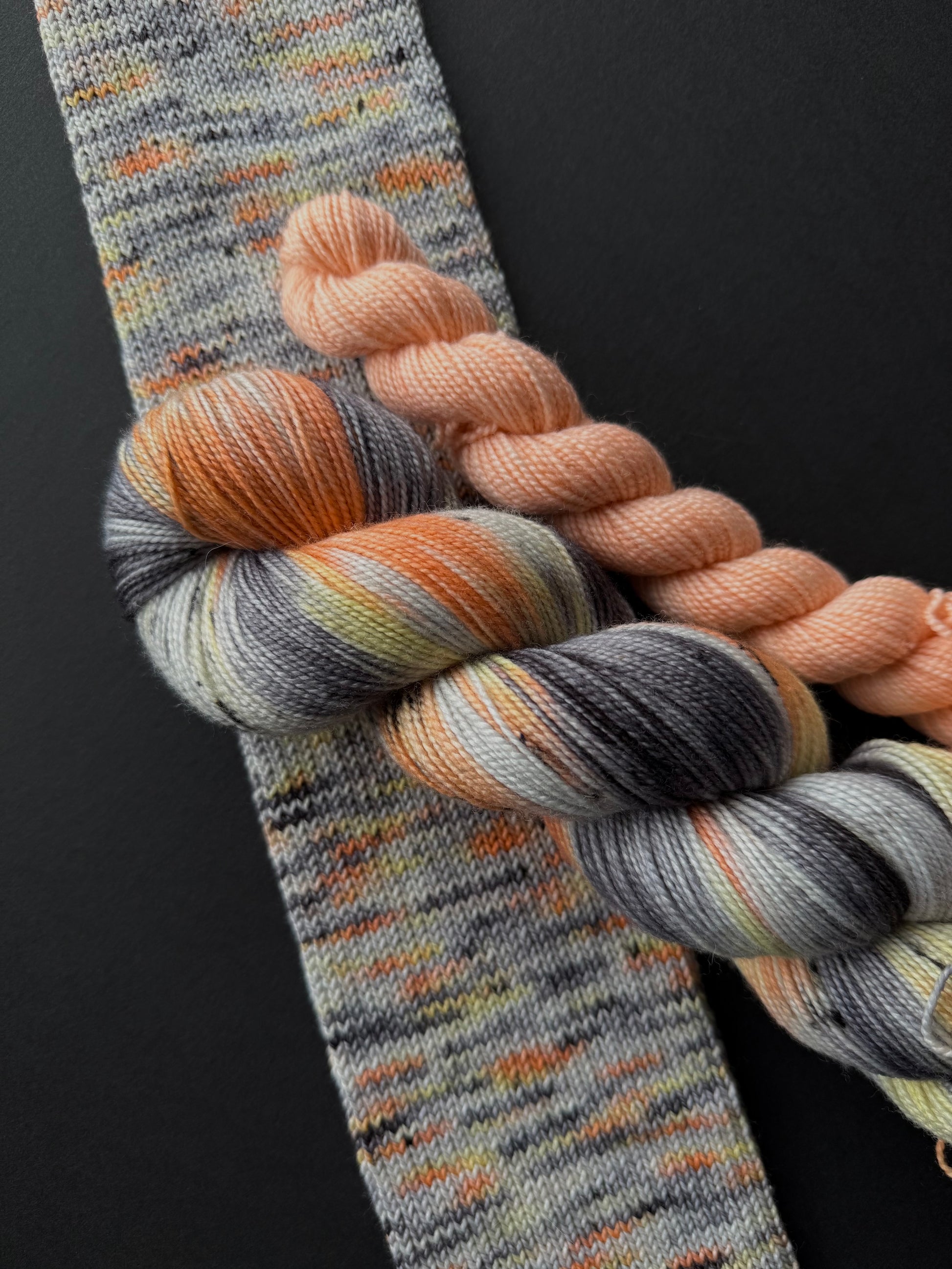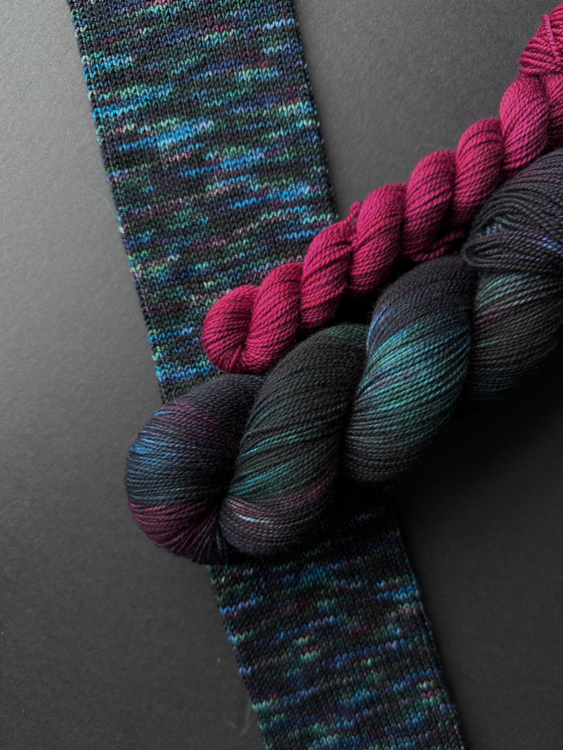 Our Sock Sets this round will include a single 20 gram mini alongside the full sized skein. This listing is for a single sock set in the colorway of your choice.