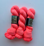Today's kits includes 3 Skeins on our Double Double Sock base. This listing is will create all but the largest size of the pattern (short about 60 yards). If you need to make the largest size I would recommend grabbing a coordinating mini or another yarn from your stash to do your collar and hems in!