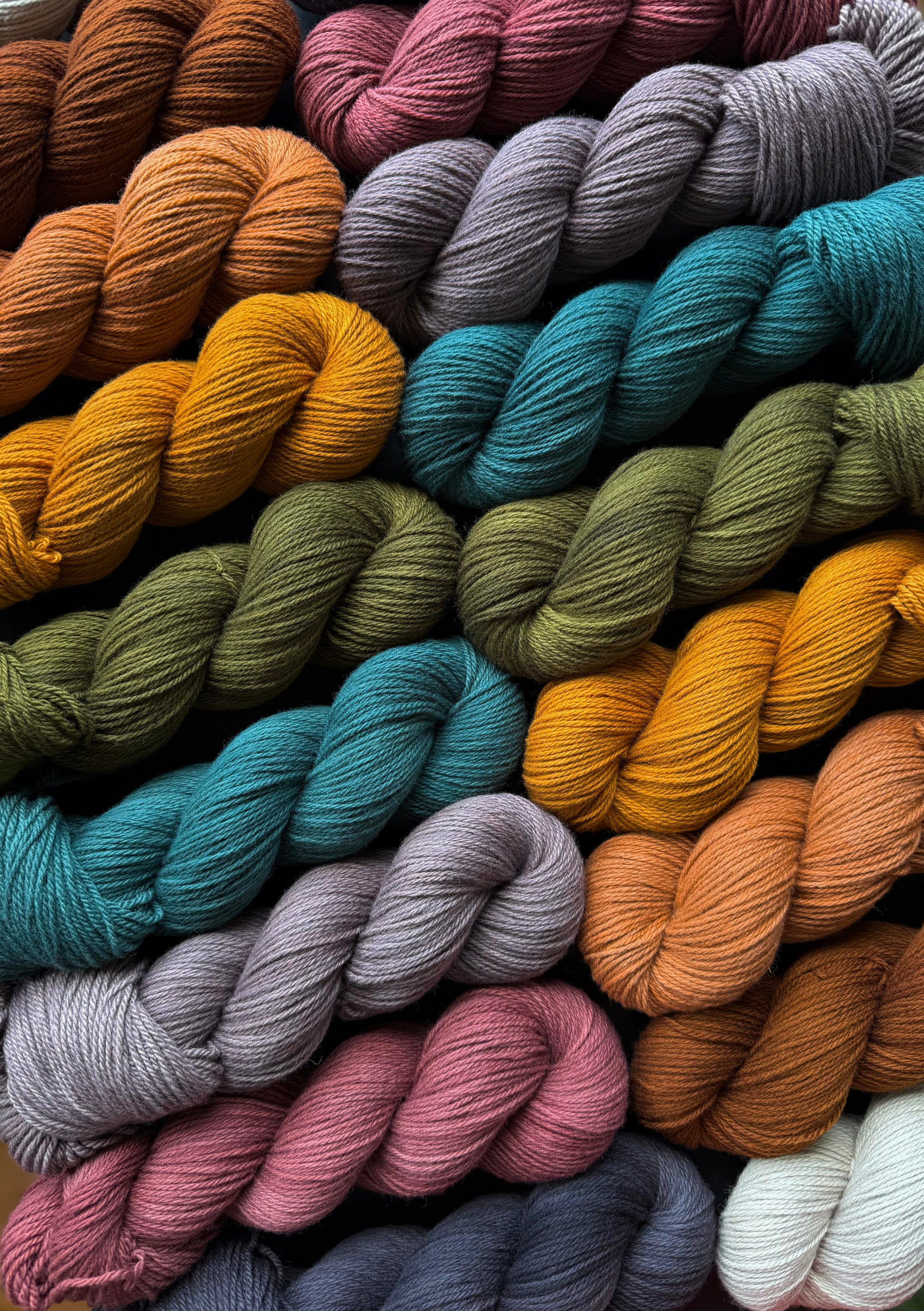 Woolen bases are special in that the construction of the yarn is a little different - there is a lot more air and space between the fibers as it's spun, giving a lighter and warmer yarn. This non-superwashed base is one that I have wanted to bring on for years - and I am so proud of this yarn. It is a super soft heirloom quality yarn that you will just want to squish!